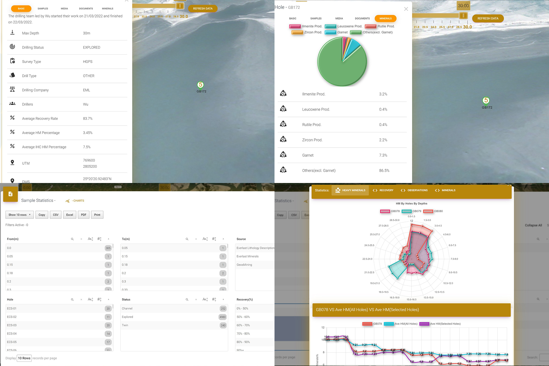 Our workflow dashboard lets management and consultants effortlessly monitor exploration activities—including drill hole images, data entries, and synchronized accounting—ensuring accuracy, transparency, and efficiency every day.
